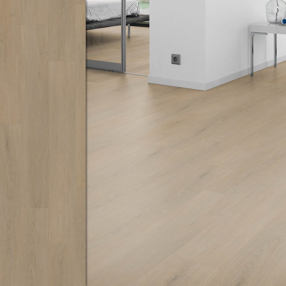 Lassen Sie sich von der herausragenden Effizienz des mehrschichtigen Aufbaus der Dielen überzeugen. Die fünf funktionalen Schichten sorgen für eine besonders hohe Stabilität und Langlebigkeit. Mit der integrierten Trittschallmatte wird der Boden nicht nur besonders leise, sondern sorgt auch für ein angenehmes, gedämpftes Laufgefühl. Die kratz- und fleckenbeständige Oberfläche garantiert, dass Ihre Dielen auch bei hoher Beanspruchung ihren makellosen Look behalten. Und dank der Anti-Rutsch-Oberfläche genießen Sie jederzeit sicheren Halt.