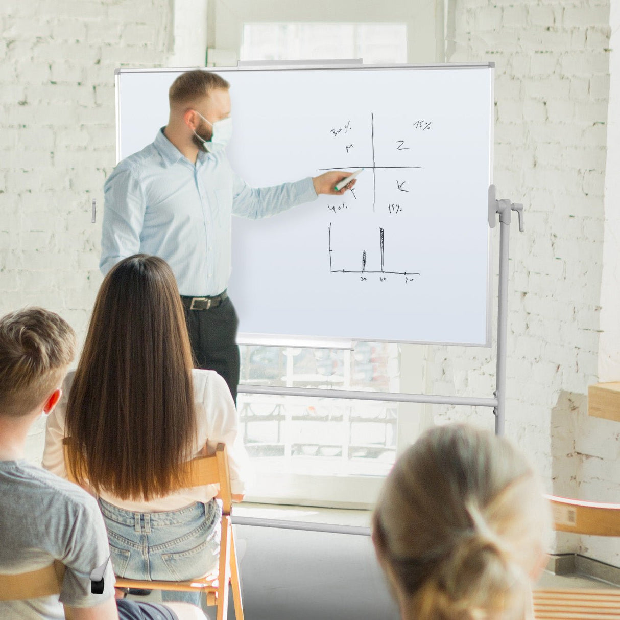 In der Welt der Schulung und Präsentation ist Flexibilität von entscheidender Bedeutung. Die Metaplanwand Mobil Step UP bietet Ihnen genau diese Flexibilität, die Sie benötigen. Dank ihres praktischen Rollensystems können Sie Ihre Präsentation mühelos von einem Ort zum anderen verschieben, ohne großen Aufwand. Die Drehfunktion der Tafel eröffnet Ihnen zudem unzählige Gestaltungsmöglichkeiten und ausreichend Platz für Ideen, Notizen und Informationen. Die Oberfläche des Whiteboards kann mithilfe eines Schraubkopfes in die gewünschte Position geneigt und arretiert werden.