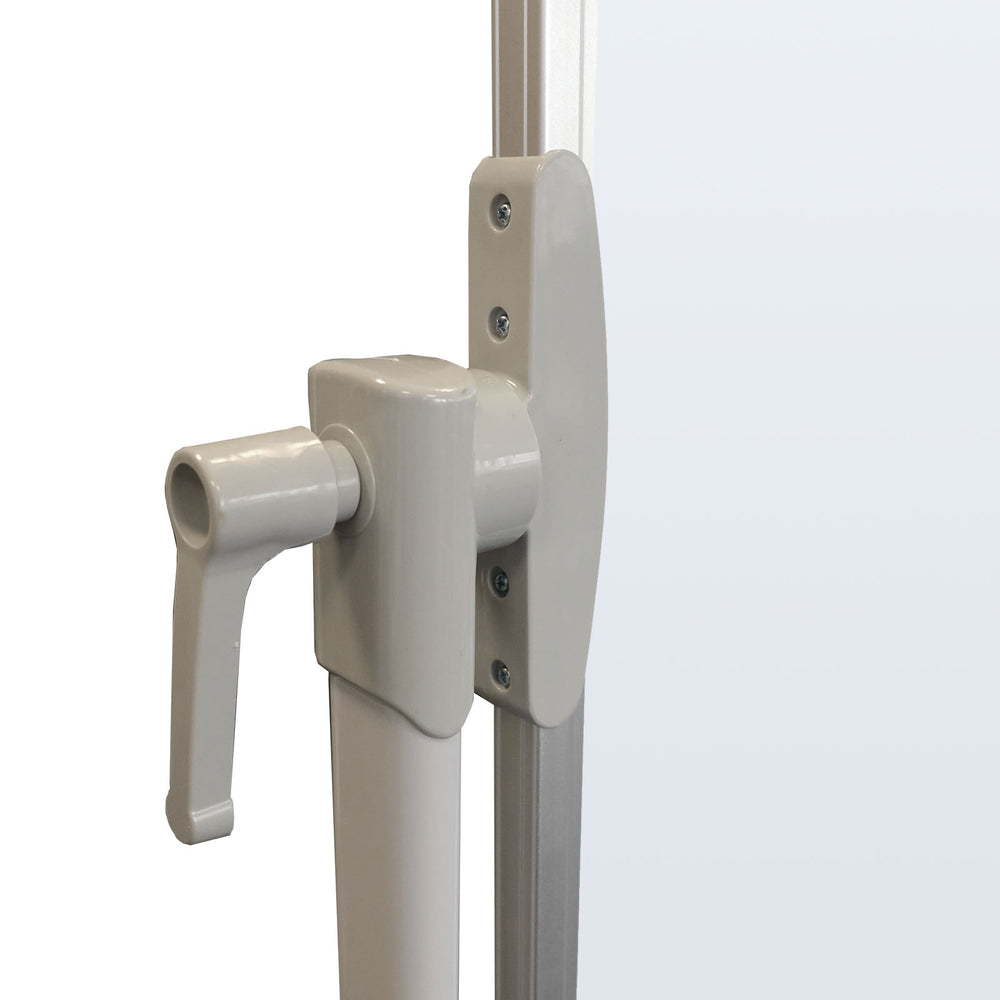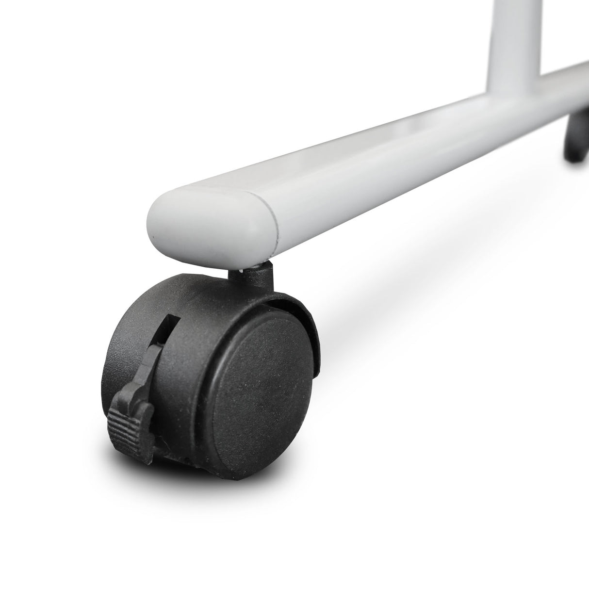 Das solide Aluminium-Fahrgestell der Metaplanwand Mobil Step UP bewegt sich sanft auf 4 Leichtlauf-Rollen, von denen 2 mit Bremsen ausgestattet sind. Dadurch steht das Whiteboard Mobil auch während Ihrer Präsentation stabil und sicher an Ort und Stelle.