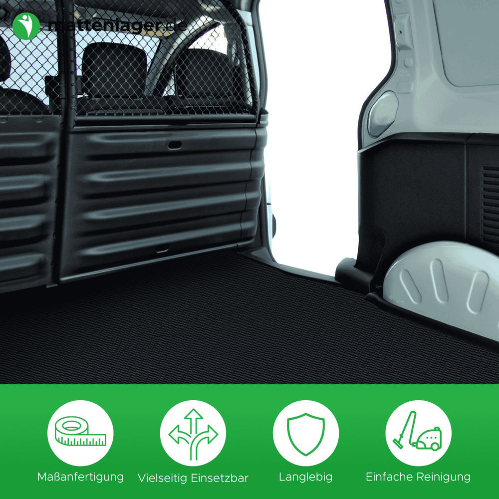 Die Gummimatte STRIKE ist die perfekte Antirutschmatte für Ladeflächen von Transportern und schützt vor dem Verrutschen der Ladung bei Brems-, Anfahr- oder Ausweichmanövern. Die Hammerschlagmatte kann ganz einfach je nach Transporter Typ individuell zugeschnitten werden und kann zudem problemlos auf Birkensperrholz- oder Kunststoffböden ausgelegt werden. Die stabile und robuste Gummimatte STRIKE erweist sich so als perfekte Antirutschmatte für Ladeflächen jeder Art.