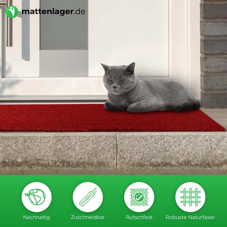 Sie können die umweltfreundlichen Kokosmatten bequem als Fußabtreter vor der Haustür, der Balkontür oder der Terrassentür verwenden. Sollten Sie eine Bodenvertiefung im Eingangsbereich haben, empfehlen wir Ihnen unsere Premium-Kokosmatten mit Zuschnitt nach Maß!