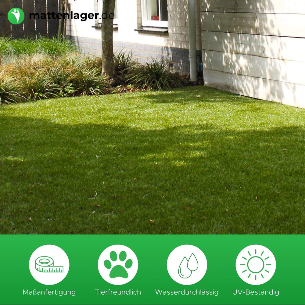 Der Kunstrasen EVERGREEN wird individuell nach Maß gefertigt und ist in einer Breite von 200 cm sowie einer Länge von 100 cm bis 2500 cm erhältlich. So passt er sich perfekt Ihrer Wunschfläche an. Gleichzeitig ist der Rasen umweltfreundlich und hilft Ihnen, die Pflege Ihres Außenbereichs deutlich zu vereinfachen – ganz ohne ständiges Mähen und Bewässern.