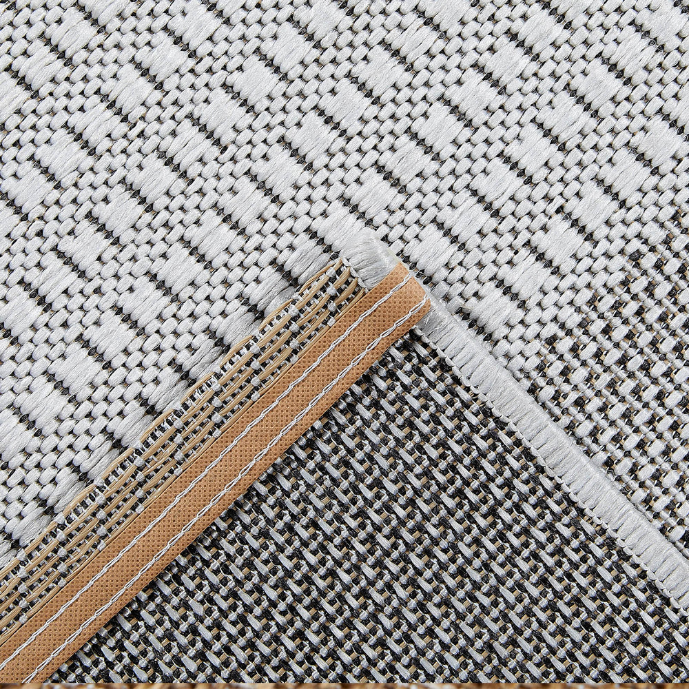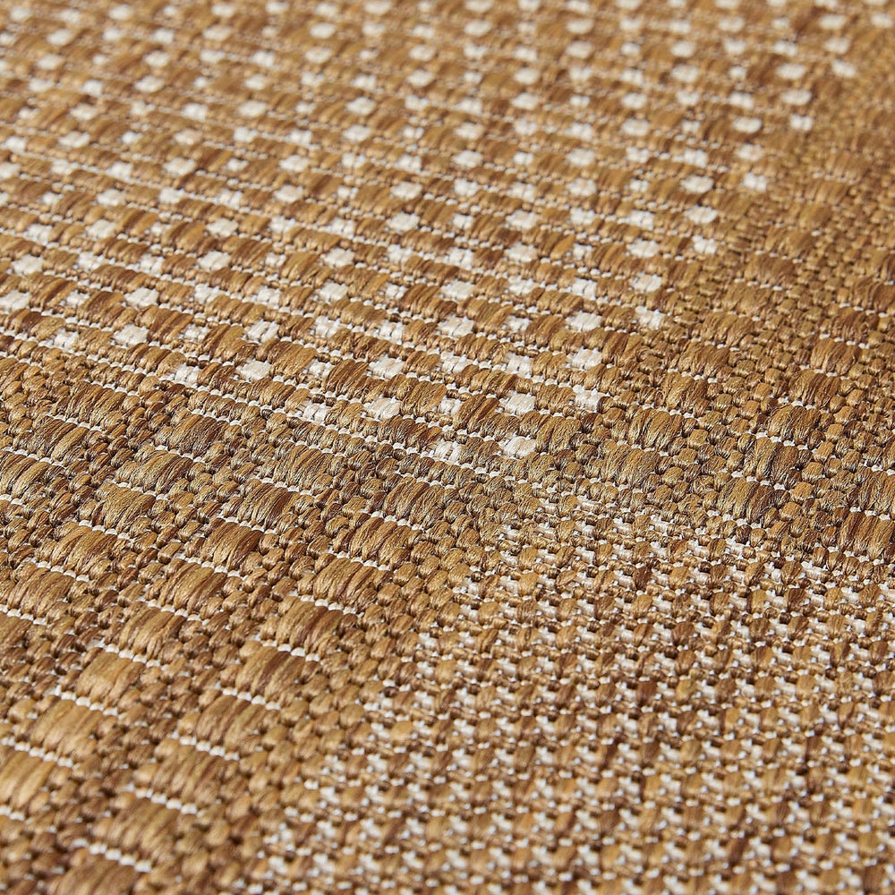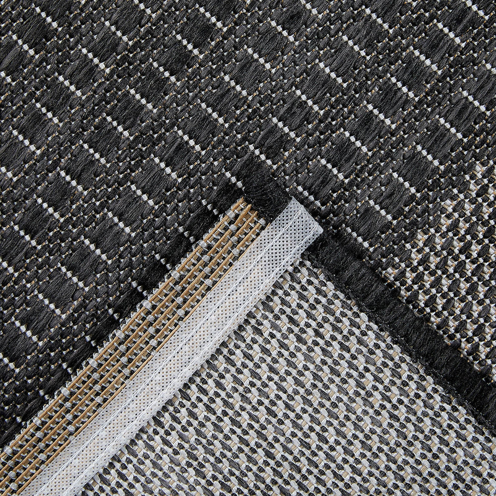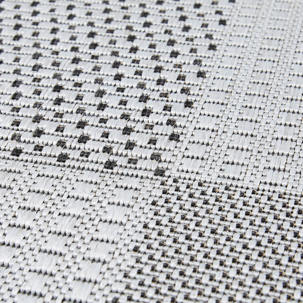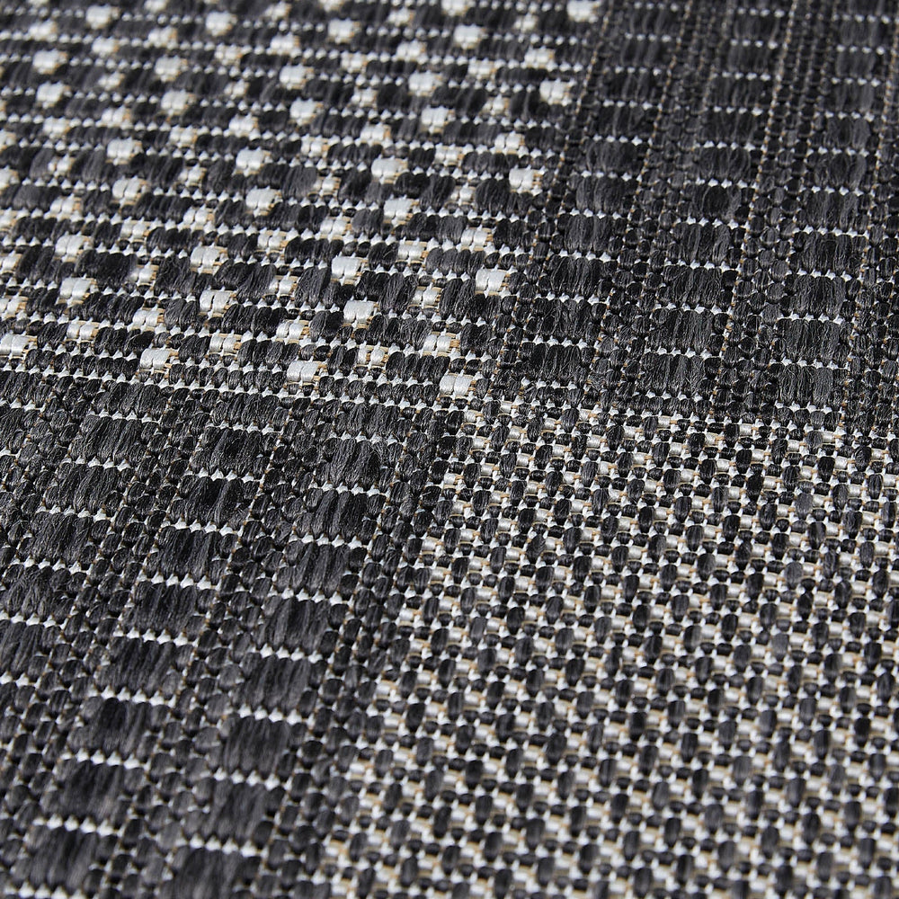Die modernen Muster des Sommerteppichs in dezentem Anthrazit und Beige sind nicht zu bunt und sorgen so für ein klassisch schlichtes Ambiente. Mit dem Schachbrett-Muster bleibt er dezent im Hintergrund, ohne zu. Er ist besonders flach gewebt und passt so auch unter jede Terrassentür.