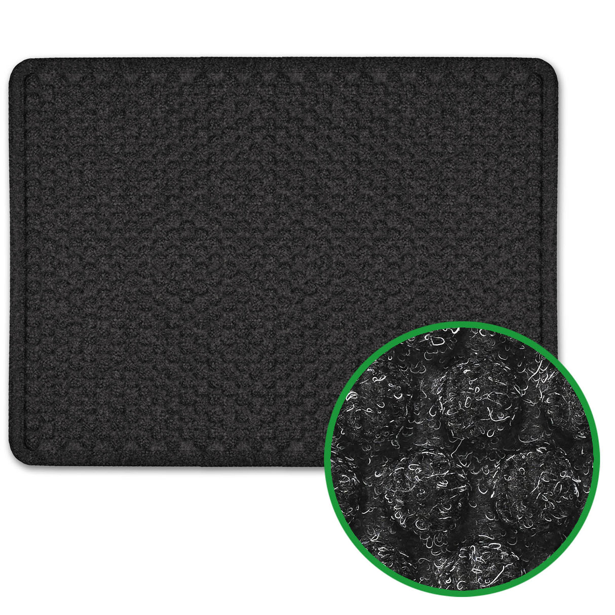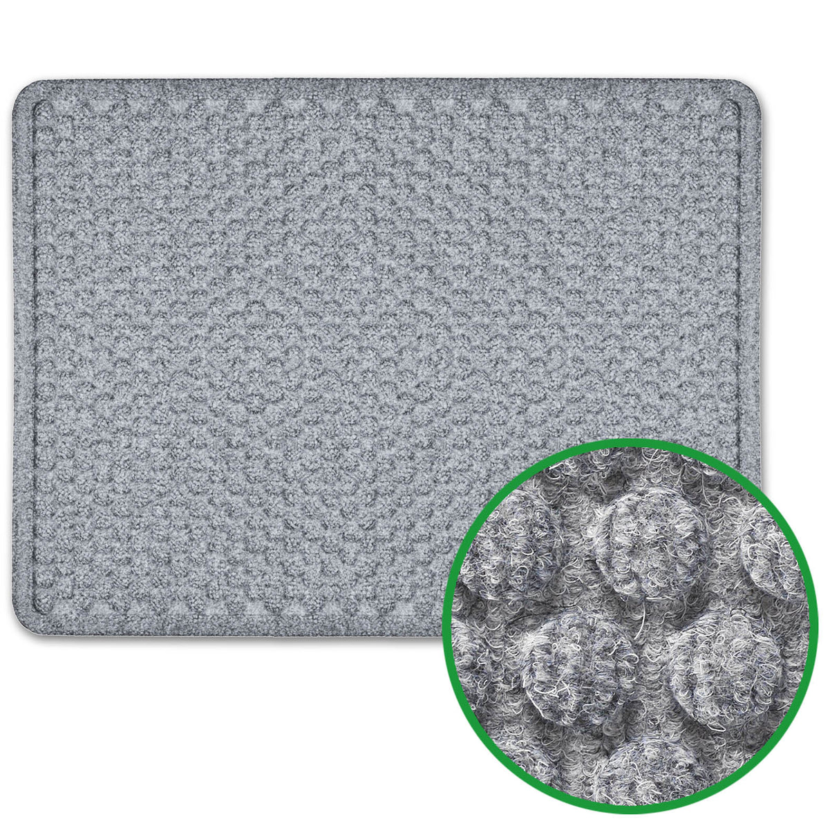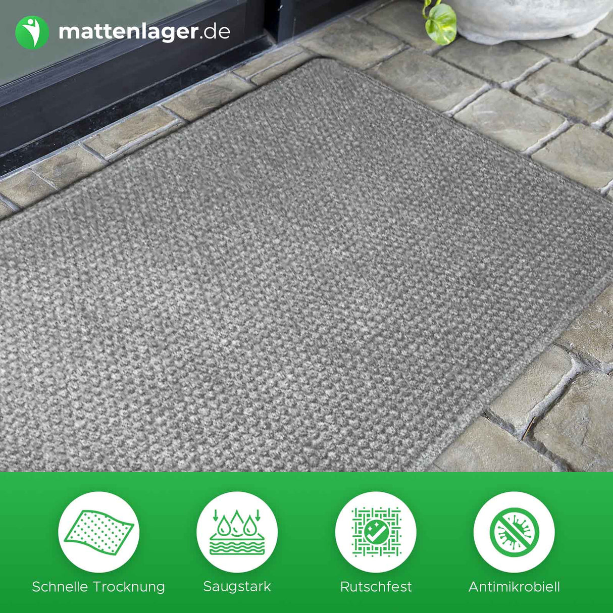 Durch die antimikrobielle Behandlung des Stoffes wird die Verbreitung geruchsverursachender Bakterien und Keime vermindert. Die geprägte Verarbeitung der Oberfläche hilft außerdem dabei Staub und Dreck von Schuhsohlen zu entfernen.