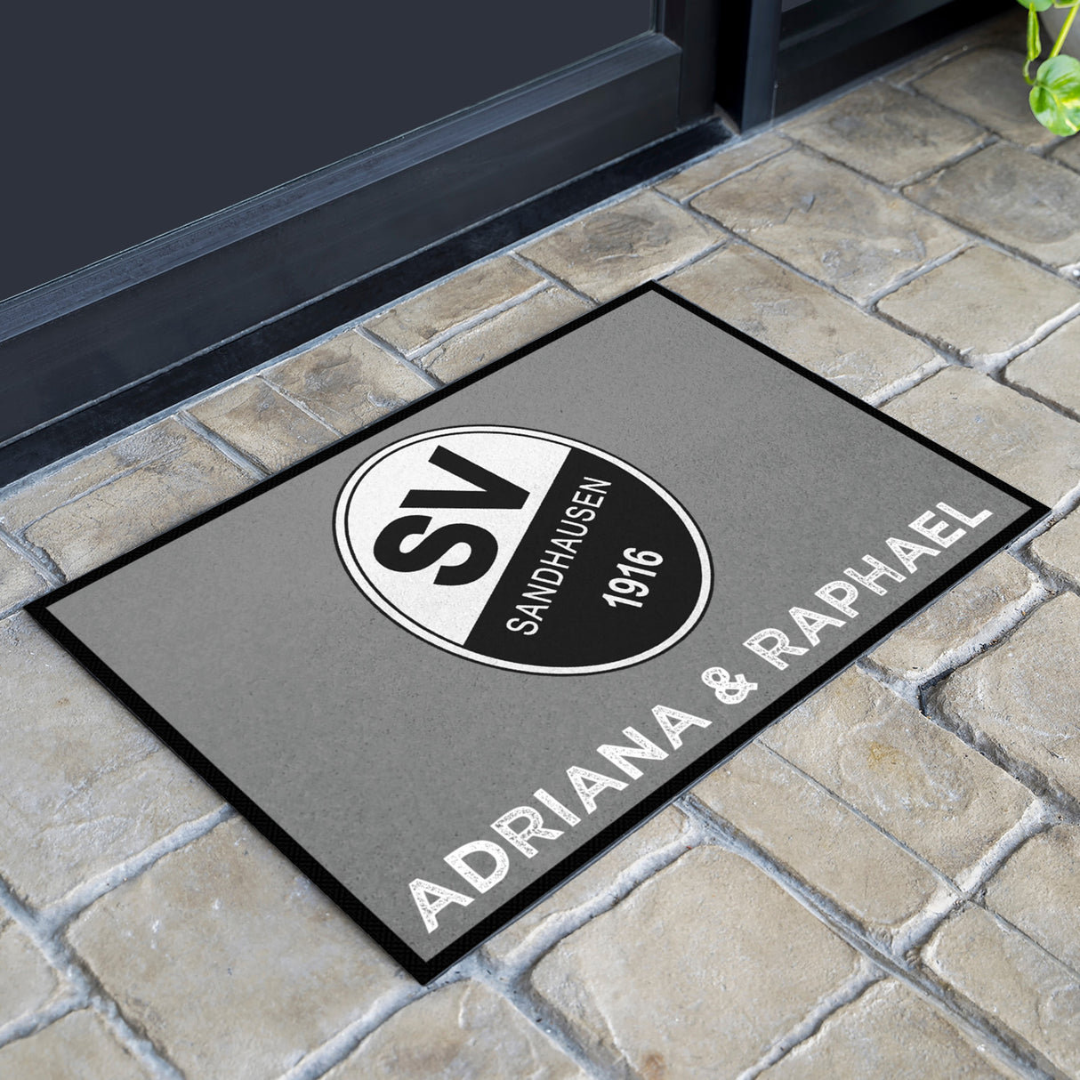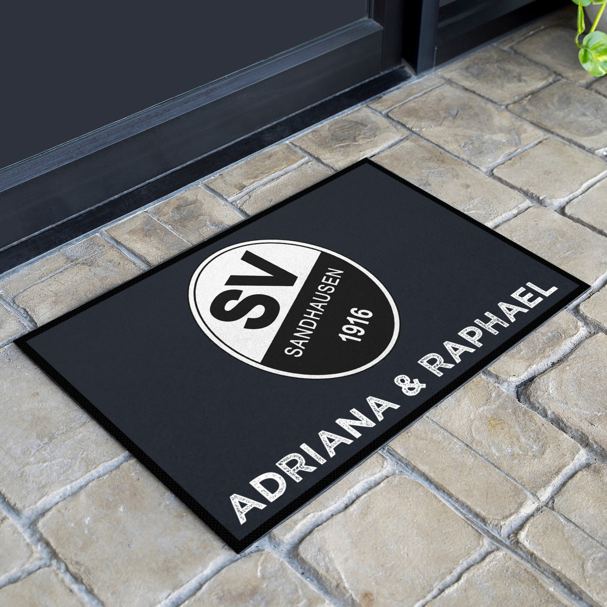 Mehr Fan-Liebe geht nicht: Mit der Fußmatte mit dem offiziellen SV Sandhausen Logo und deinem persönlichen Namen holst du dir deinen Verein direkt vor die Tür und machst sofort klar, wofür dein Fan-Herz schlägt.