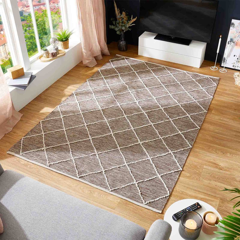 Wer Wohnlichkeit mit Understatement liebt, wird den Handwebteppich MONTARA schätzen. Mit seinem dezenten Rautenmuster und der edlen Farbwahl bringt er Ruhe und Stil in jedes Zuhause – ganz gleich, ob modern, klassisch oder skandinavisch eingerichtet. Gewebt aus 100 % Baumwolle, vereint dieser hochwertige Handwebteppich natürliche Materialien mit zeitloser Optik und hoher Alltagstauglichkeit.