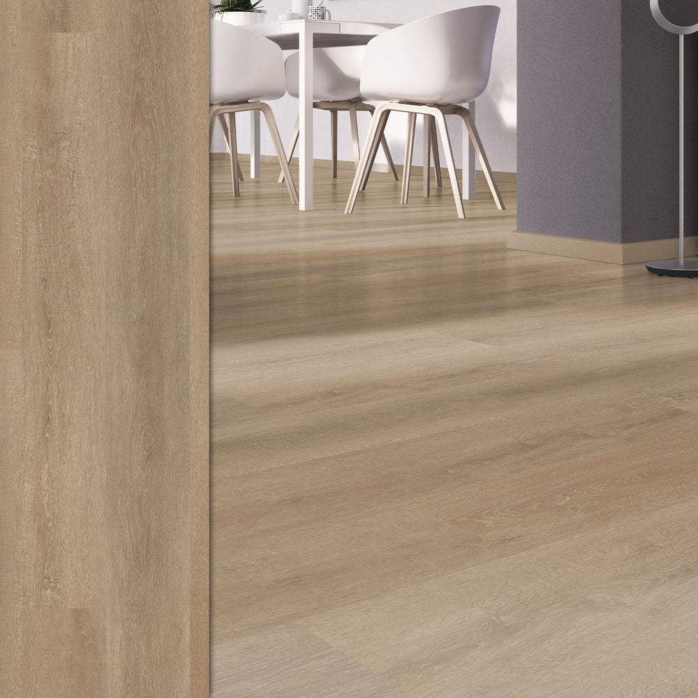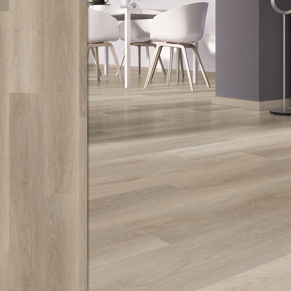 Mit ihrer exquisiten Synchronprägung wirken die OAK PRO Holzdielen so lebendig, dass man kaum glauben kann, dass es sich nicht um echtes Holz handelt. Jede Maserung und jeder Riss kann mit Händen ertastet werden und bewirkt eine unvergleichliche Authentizität.