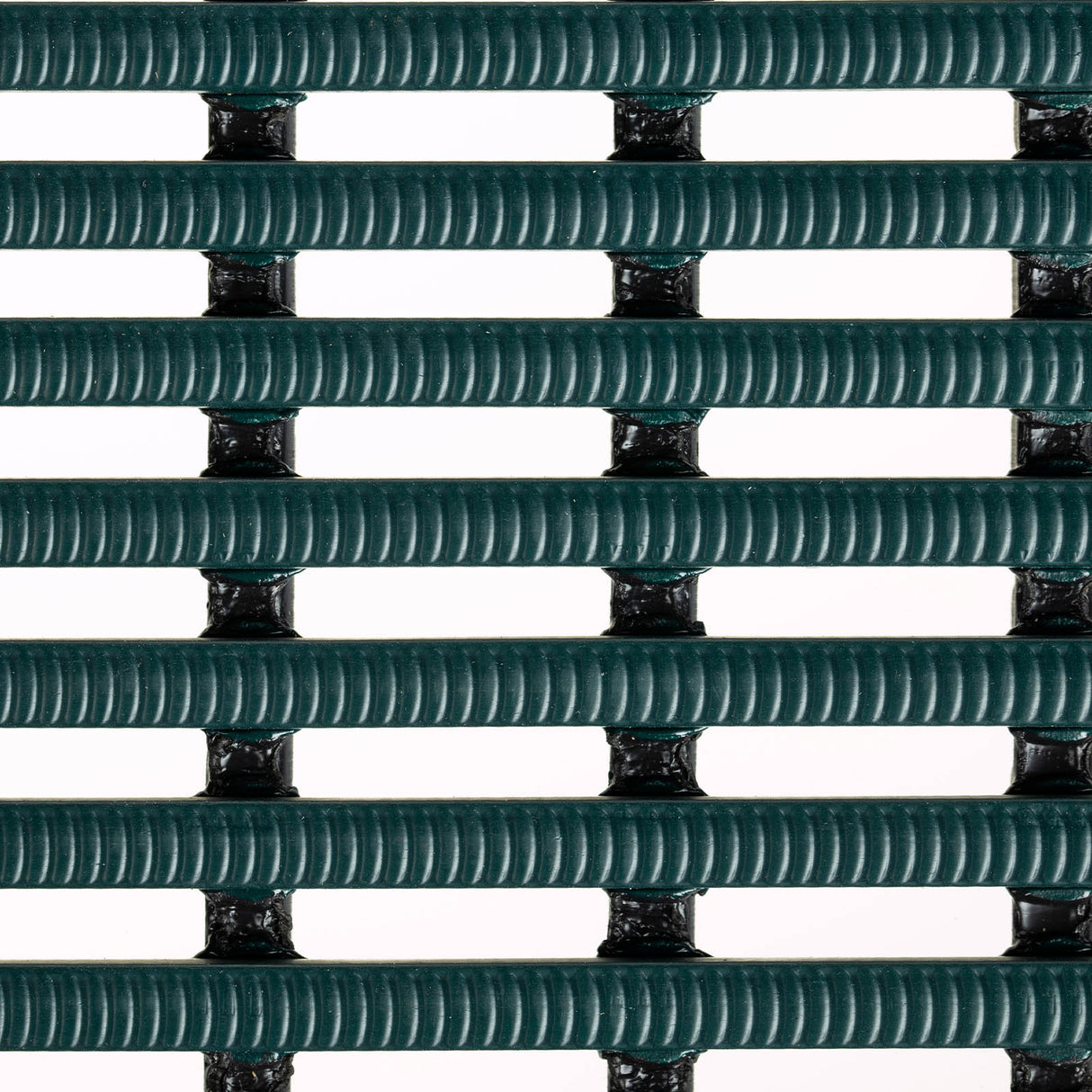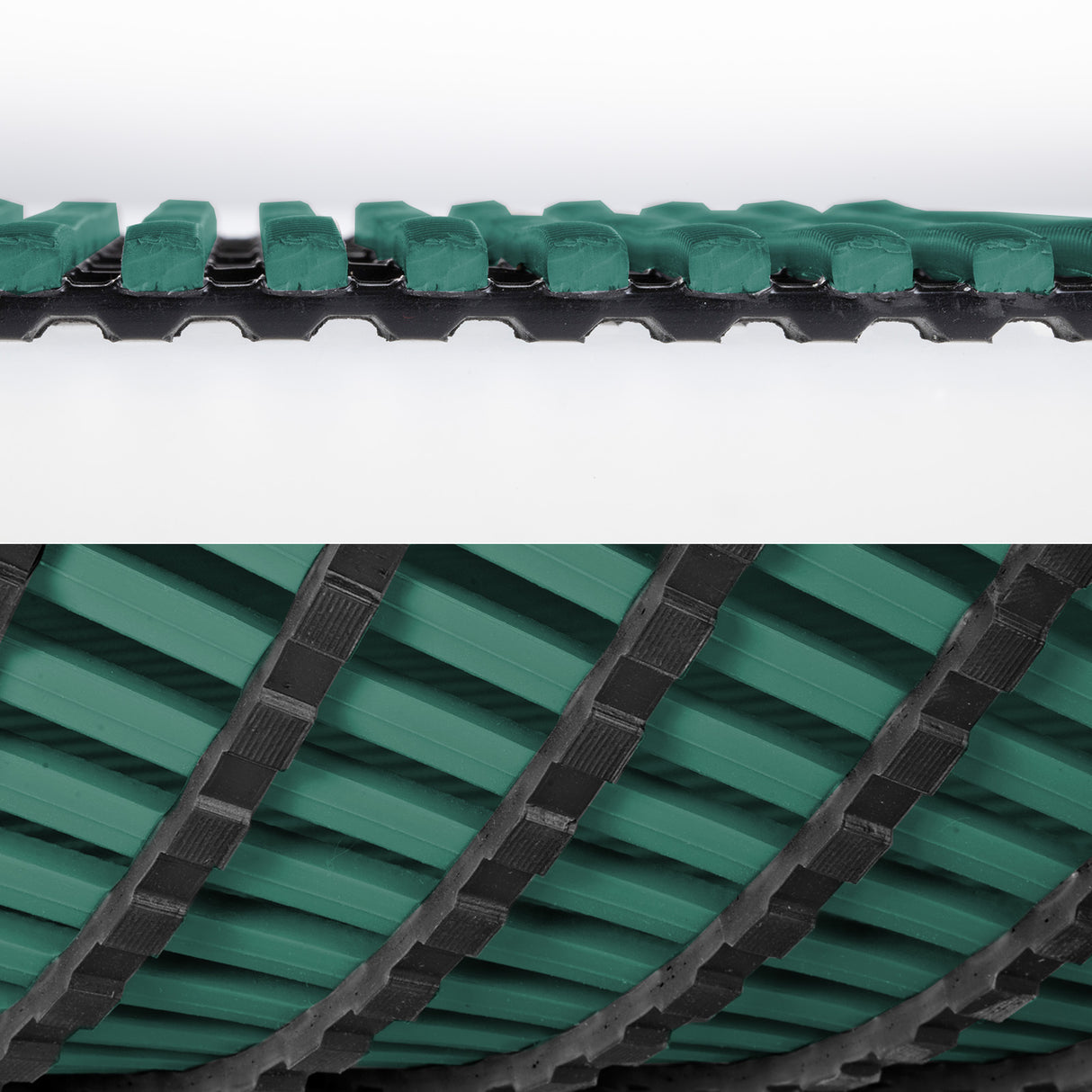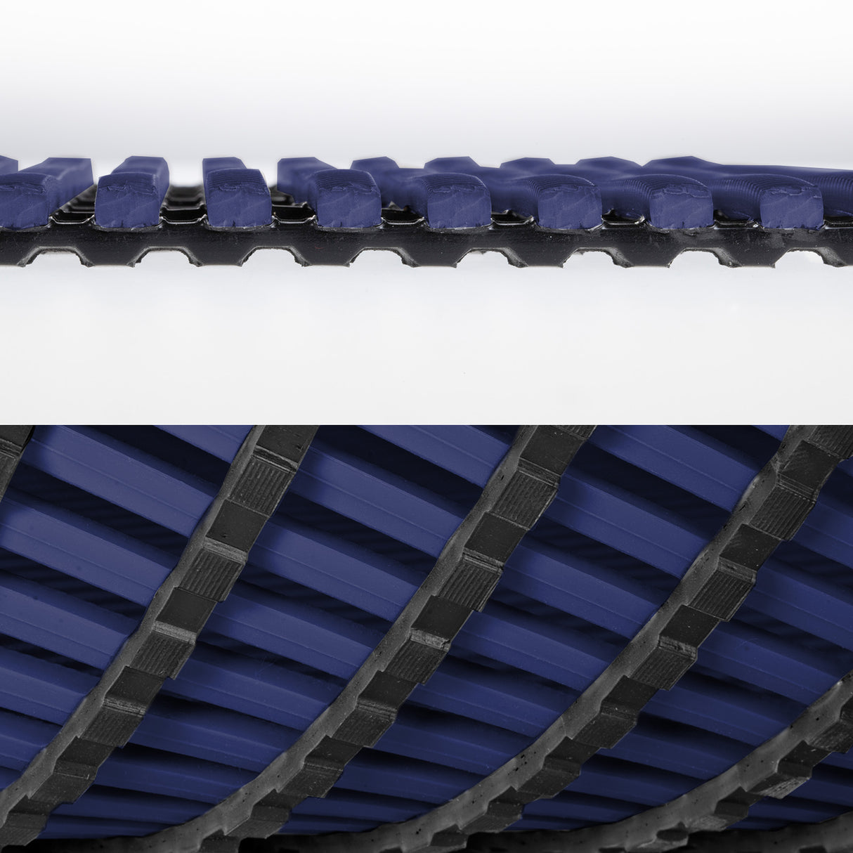 Ein integriertes Drainagesystem für den Barfußbereich, welches aus einer zweilagigen Gitterstruktur besteht, lässt jegliche Flüssigkeiten in alle möglichen Richtungen abfließen. Der herausragende Vorteil hierbei ist, dass dieses System auch bei größeren Wassermengen möglich ist.