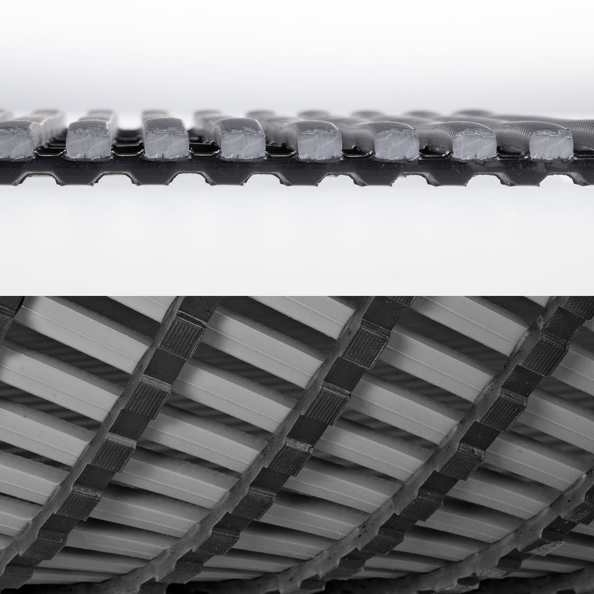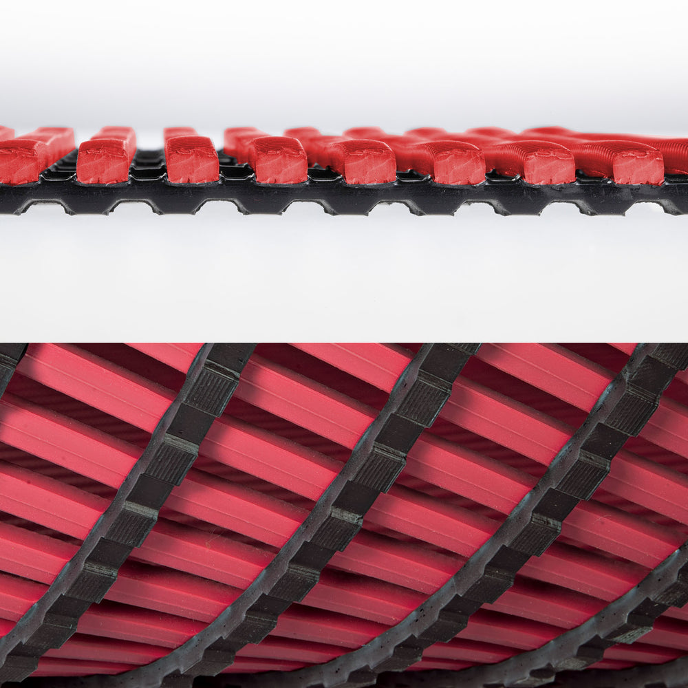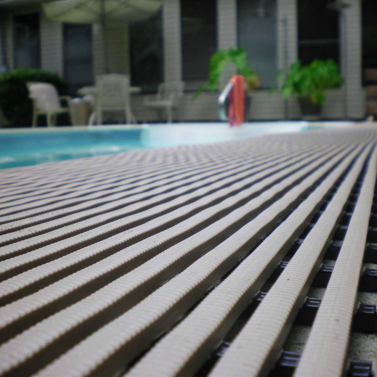 Ein integriertes Drainagesystem für den Barfußbereich, welches aus einer zweilagigen Gitterstruktur besteht, lässt jegliche Flüssigkeiten in alle möglichen Richtungen abfließen. Der herausragende Vorteil hierbei ist, dass dieses System auch bei größeren Wassermengen möglich ist.