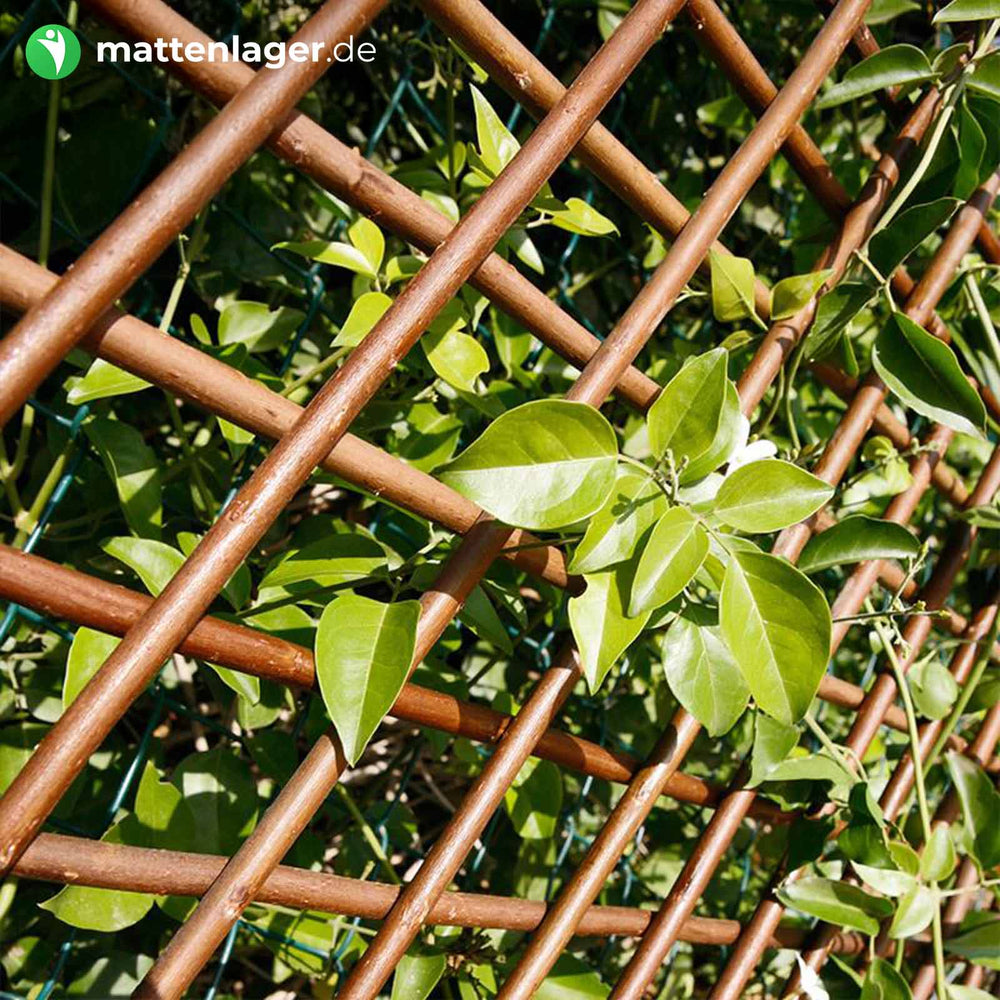 Die Rankhilfe aus robusten Weidenzweigen bietet eine stabile Basis für Ihre Pflanzen und ist ideal für die Bepflanzung mit Kletterpflanzen wie Efeu, Clematis oder Rosen. Das Rankgitter LUMRA ist nicht nur funktional, sondern fügt sich durch seine natürliche Holzoptik auch harmonisch in jede Gartengestaltung ein. Mit der Möglichkeit, das Gitter ausziehbar bis zu 1x2 Meter zu vergrößern, können Sie es an Ihre individuellen Bedürfnisse anpassen.
