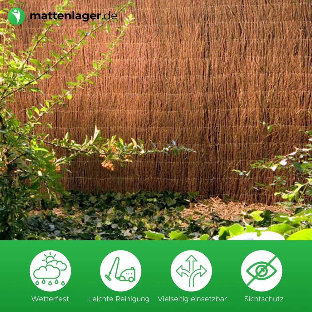 Das Naturprodukt besteht aus robusten Weidenruten, welche durch ihre Feuchtigkeitsresistenz sehr pflegeleicht und witterungsbeständig sind. Einmal angebracht sind keine weiteren Arbeiten an der Sichtschutzmatte aus Holz nötig. Die Weidenmatte ist zudem äußerst langlebig und flexibel. Dank der verzinkten Verdrahtung, alle 10 cm, bietet CAPREA die perfekte Kombination aus Stabilität und Elastizität.